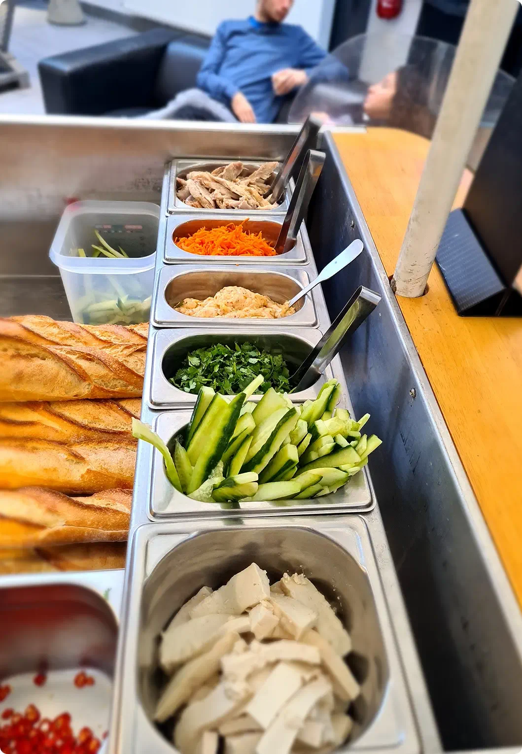 Pour vos réunions, séminaires ou déjeuners d’équipe, on prépare à l’avance des buffets, petits déjeuners ou cocktails, livrés directement dans vos bureaux ou espaces événementiels. Des formules pratiques, rapides et entièrement faites maison.